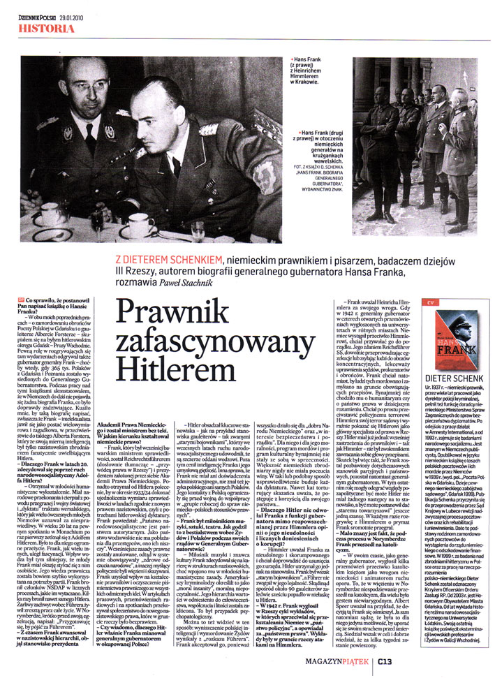 Szanowni Państwo, Fakt, że miałem możliwość napisania książki o obronie Poczty Polskiej w Gdańsku, był dla mnie wielkim szczęściem, ponieważ badanie zbrodni nazistowskich w Polsce stało się odtąd moim życiowym zadaniem. Koło Rodzin Byłych Pracowników Poczty Polskiej w Gdańsku w istotny sposób przyczyniło się do tego, że otwierały się przede mną drzwi wielu archiwów i instytucji. Powstały dzięki temu przyjaźnie, które trwają do dzisiaj. To właśnie Polacy dali mi poczucie, że działam w słusznej sprawie. Uświadamianie Niemcom bezmiaru nazistowskich zbrodni w początkowym okresie nie przysporzyło mi w Niemczech wyłącznie przyjaciół. Cieszyłem się jednak solidarnością ze strony części mediów, które wspierały moją pracę. Z tego powodu doceniam to, jak wielkim dobrem jest wolność prasy – zwłaszcza dla kogoś, kto krytykuje władze państwowe. W roku 2012 przyznano mi w Polsce tytuł „Kuratora Pamięci Narodowej”. Czuję się zobligowany, by wystąpić tu również w tym charakterze. Gdańskie Muzeum II Wojny Światowej w swojej pierwotnej formie oraz Europejskie Centrum Solidarności wykazują pod względem historycznym, architektonicznym i wystawienniczym światowy poziom. Wszelką zabarwioną politycznie krytykę tych instytucji uważam za chybioną. Jest dla mnie szczególnym zaszczytem, że mogę jako Niemiec przemawiać w dzisiejszym mateczniku europejskiej Solidarności. Solidarność to pojęcie wieloaspektowe – przesłanie i zarazem program polityczny, dlatego powinna ona charakteryzować stosunek państwa do społeczeństwa obywatelskiego. Znajduje to zastosowanie, kiedy obywatel ma uzasadnioną pewność, że rząd nie może wtrącać się do spraw na wszystkich szczeblach – a w przypadku idealnym wcale tego czynić nie chce. Mój osobisty rozwój kształtował się pod znacznym wpływem dra Fritza Bauera, który przeżył holocaust na wygnaniu w Skandynawii, a następnie, już jako prokurator generalny, doprowadził do frankfurckich procesów zbrodniarzy z Auschwitz i umożliwił ujęcie nazisty Adolfa Eichmanna. Bauer twierdził m. in., że: „Nazizm nie był ruchem stworzonym tylko przez Hitlera i kilku jego pomagierów. Nazizm powstał w łonie niemieckiego narodu. Stworzyły go masy, które idąc równym krokiem marszowym wspólnie ryczały do taktu. Nie ma führera [dosł. prowadzącego] bez ludzi, którzy dają się prowadzić.” W powojennych Niemczech Bauer był rygorystycznym orędownikiem zasady państwa prawa. Według niego rozdzielność władzy wykonawczej, ustawodawczej i sądowej nie podlegała kwestii. Przyłączam się do tych zasad, jako że nie istnieje lepsza forma państwa i społeczeństwa niż demokracja. Miałem szczęście dorastać w tym systemie, znajdując w nim bezpieczeństwo zawodowe. Oczywiste jest, że w demokratycznym państwie sędziowie rozstrzygają wyłącznie według litery prawa, w sposób nieposzlakowany i niezależny od wpływów politycznych. Zwłaszcza Trybunał Konstytucyjny stanowi instancję, która powinna kontrolować rząd i stać nad ustawodawcą. Mogłoby się zdarzyć, że Trybunał Konstytucyjny, który zasługiwałby na swoją nazwę, uznałby wywłaszczenie Westerplatte za bezprawne nadużycie władzy i unieważniłby odnośną decyzję rządu. Stwierdzam to z głębokim przekonaniem, czując się do tego zobowiązany jako honorowy obywatel Gdańska. Fritz Bauer opowiadał się za duchową wolnością obywateli, którzy mają prawo sami, bez wpływu państwa, decydować o tym, w co wierzą lub nie wierzą, i które programy telewizyjne lub sztuki teatralne oglądają. Bauer z pewnością zgodziłby się ze zdaniem prof. Władysława Bartoszewskiego, gdyby się spotkali. Bartoszewski mówił: „Brak wolności jest czymś takim jak brak powietrza do oddychania”. Od roku 1990 w Niemczech 195 osób straciło życie w wyniku prawicowej przemocy. Nowe formy tej przestępczości wychodzą nieraz z internetu i są wręcz zatrważające. Niemcy mają duży problem z neonazistami, antysemityzmem i terroryzmem. Pełne nienawiści hasła w internecie nie zatrzymują się na granicach państw, a od zabójczej przemocy dzieli je niekiedy tylko mały krok. Często myślę o prezydencie Pawle Adamowiczu, który na przestrzeni wielu lat wspierał moją pracę. Nigdy nie wygaśnie we mnie przerażenie w obliczu tego morderstwa, podobnie jak trwałe jest moje współczucie dla jego rodziny i dla gdańszczan. Film Damiana Wenty w sposób empatyczny i zarazem realistyczny pokazuje, co wydarzyło się 1 września 1939 na gdańskiej poczcie. Zbrodnia nazistów była brutalna i barbarzyńska, a zobaczenie jej na ekranie jest czymś trudnym do udźwignięcia. Mam prośbę do obecnych tu uczennic i uczniów: kiedy dzisiaj wrócicie do domu, porozmawiajcie o filmie z rodzicami, a na ile to możliwe, również z dziadkami, gdyż wojna dotknęła wówczas prawie każdej polskiej rodziny. Jeżeli w ogóle można nauczyć się czegoś z doświadczeń okresu nazistowskiego, to jest to współczucie, odwaga cywilna oraz odmowa i opór wobec wszystkiego, co kieruje się przeciwko ludziom. Ostatnie słowo na waszą dalszą drogę życia, drogie uczennice i uczniowie: podążajcie za głosem swojego sumienia, nie ustępujcie przed złem, lecz śmiało występujcie przeciwko niemu. _______________________________________________________________________________________________________________________________________________________